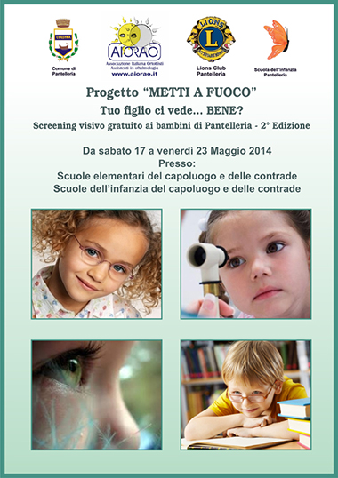 Il Lions Club di Pantelleria, dopo essere stato attivo protagonista lo scorso anno con il Progetto “Metti a fuoco” mirato alle patologie visive infantili e alle possibili prevenzioni, anche quest’anno concede il bis, da sabato 17 a venerdì 23 maggio prossimi.