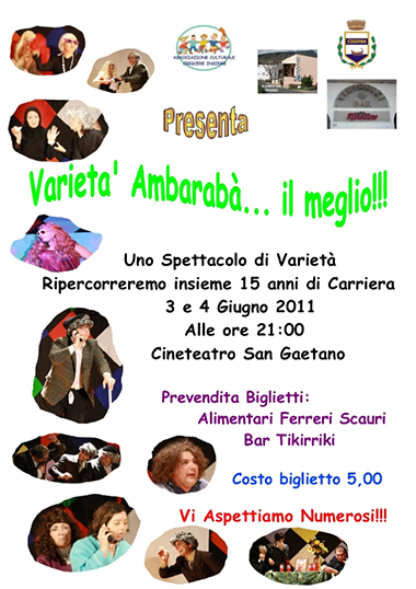 L'Associazione culturale "Crescere Insieme", nella presidenza di Marco Ruggeri, ha diligentemente definito il calendario dell'attività teatrale relativa alla stagione estiva a partire dal prossimo 3 giugno, ore 21,00, presso il Cineteatro San Gaetano di Scauri (Pantelleria), con la messa in scena di "Ambarabà...il meglio".