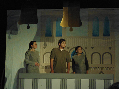 Per le 50 ore di attività di laboratorio - poi superate di gran misura con dedizione inesauribile - integrate nella didattica dellanno corrente, dirette con evidente passione dallinsegnante Adele Pineda e dalle esperte Francesca Spagnolo e Carmen Badalucco, i ragazzi di diverse classi del percorso superiore turistico, hanno affrontato, come indubbia sfida pedagogica, la messinscena del musical ispirato ad un classico della letteratura ottocentesca: il Gobbo di Notre Dame, venuto alla luce attraverso leccezionale opera di Victor Hugo.